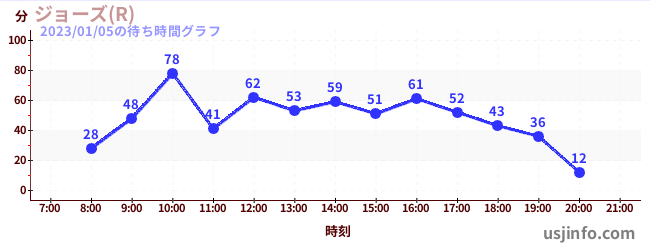 • ジョーズ(R)$B$N(B2023年01月05日の待ち時間