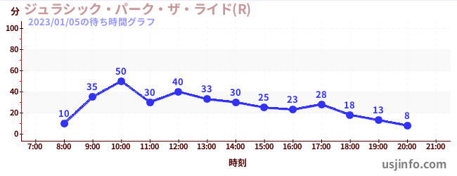 • ジュラシック・パーク・ザ・ライド(R)$B$N(B2023年01月05日の待ち時間