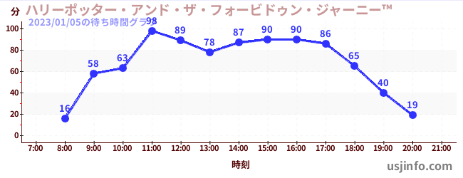 • ハリーポッター・アンド・ザ・フォービドゥン・ジャーニー™$B$N(B2023年01月05日の待ち時間