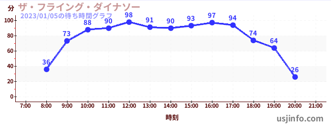 • ザ・フライング・ダイナソー$B$N(B2023年01月05日の待ち時間