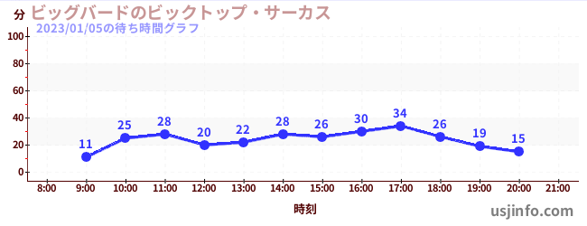 • ビッグバードのビックトップ・サーカス$B$N(B2023年01月05日の待ち時間
