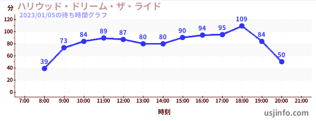 • ハリウッド・ドリーム・ザ・ライド$B$N(B2023年01月05日の待ち時間
