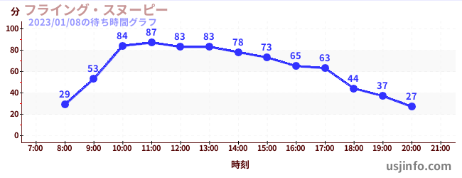 • フライング・スヌーピー$B$N(B2023年01月08日の待ち時間
