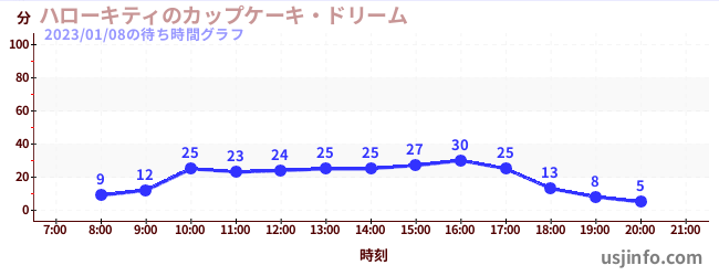 • ハローキティのカップケーキ・ドリーム$B$N(B2023年01月08日の待ち時間