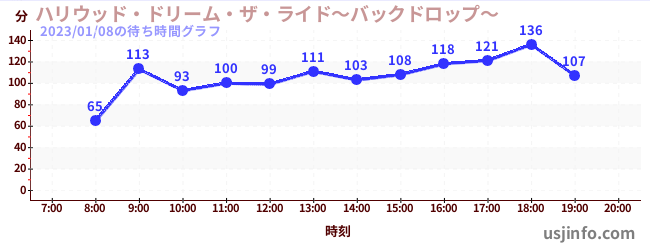 • ハリウッド・ドリーム・ザ・ライド〜バックドロップ〜$B$N(B2023年01月08日の待ち時間