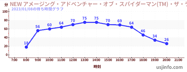 • NEW アメージング・アドベンチャー・オブ・スパイダーマン(TM)・ザ・ライド 4K3D$B$N(B2023年01月08日の待ち時間