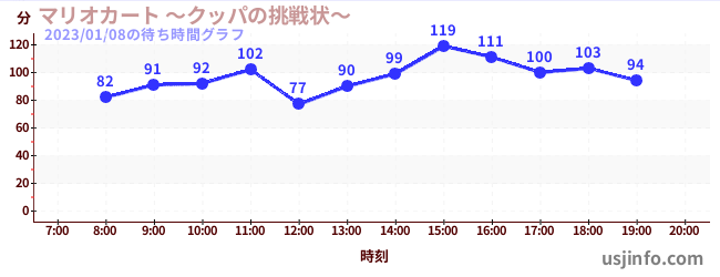• マリオカート ~クッパの挑戦状~$B$N(B2023年01月08日の待ち時間