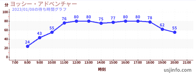 • ヨッシー・アドベンチャー$B$N(B2023年01月08日の待ち時間