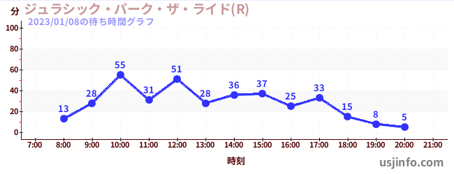 • ジュラシック・パーク・ザ・ライド(R)$B$N(B2023年01月08日の待ち時間