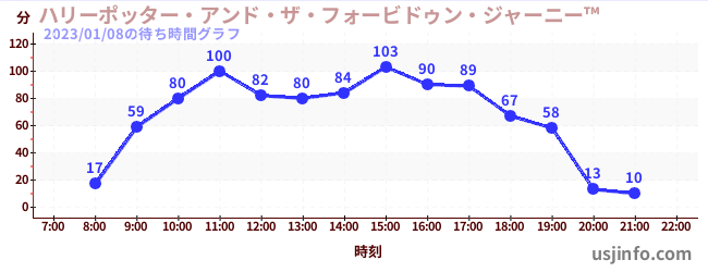 • ハリーポッター・アンド・ザ・フォービドゥン・ジャーニー™$B$N(B2023年01月08日の待ち時間