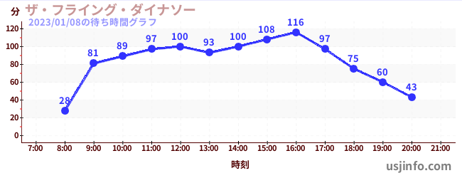 • ザ・フライング・ダイナソー$B$N(B2023年01月08日の待ち時間