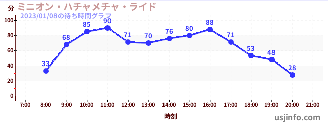 • ミニオン・ハチャメチャ・ライド$B$N(B2023年01月08日の待ち時間