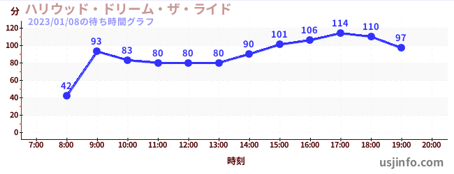• ハリウッド・ドリーム・ザ・ライド$B$N(B2023年01月08日の待ち時間