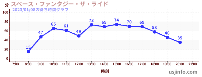 • スペース・ファンタジー・ザ・ライド$B$N(B2023年01月08日の待ち時間