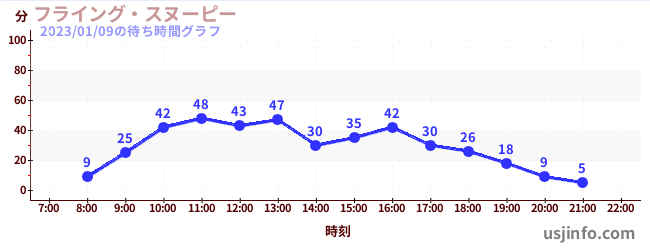 • フライング・スヌーピー$B$N(B2023年01月09日の待ち時間