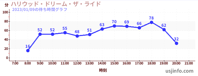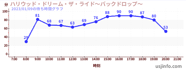• ハリウッド・ドリーム・ザ・ライド〜バックドロップ〜$B$N(B2023年01月09日の待ち時間