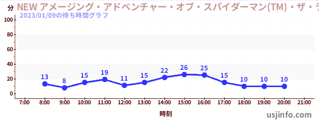 • NEW アメージング・アドベンチャー・オブ・スパイダーマン(TM)・ザ・ライド 4K3D$B$N(B2023年01月09日の待ち時間