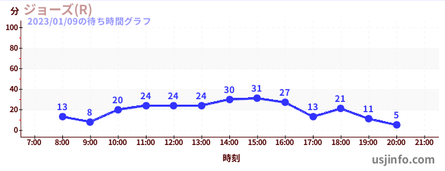 • ジョーズ(R)$B$N(B2023年01月09日の待ち時間