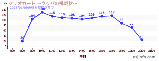 • マリオカート ~クッパの挑戦状~$B$N(B2023年01月09日の待ち時間