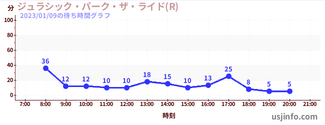 • ジュラシック・パーク・ザ・ライド(R)$B$N(B2023年01月09日の待ち時間