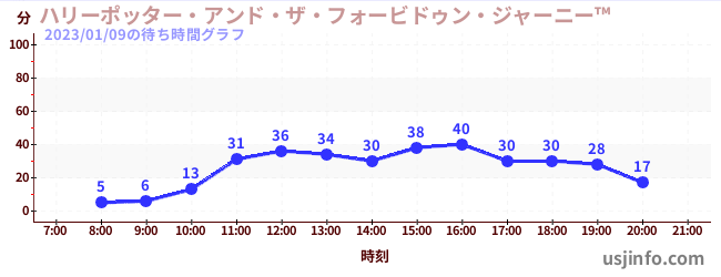 • ハリーポッター・アンド・ザ・フォービドゥン・ジャーニー™$B$N(B2023年01月09日の待ち時間