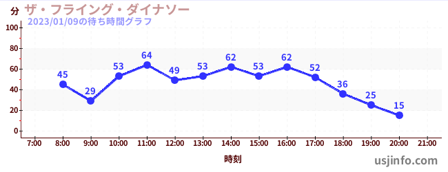 • ザ・フライング・ダイナソー$B$N(B2023年01月09日の待ち時間