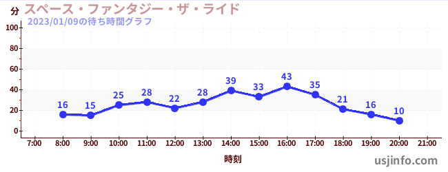 • スペース・ファンタジー・ザ・ライド$B$N(B2023年01月09日の待ち時間