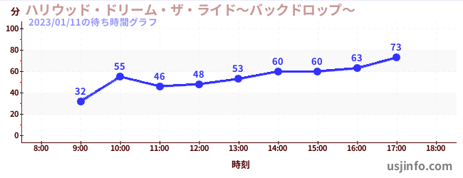 • ハリウッド・ドリーム・ザ・ライド〜バックドロップ〜$B$N(B2023年01月11日の待ち時間