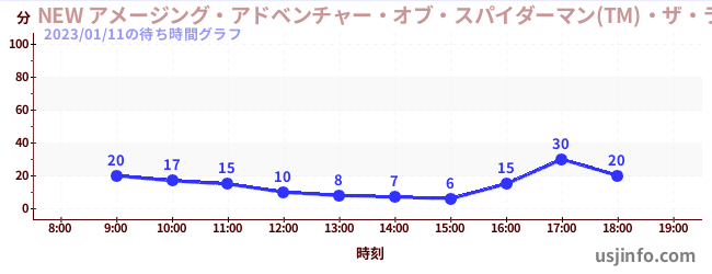 • NEW アメージング・アドベンチャー・オブ・スパイダーマン(TM)・ザ・ライド 4K3D$B$N(B2023年01月11日の待ち時間