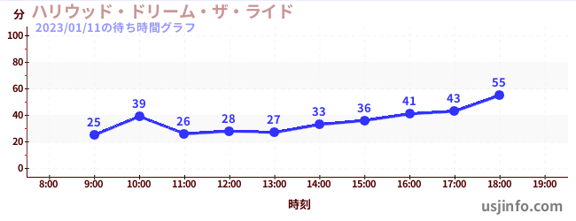 • ハリウッド・ドリーム・ザ・ライド$B$N(B2023年01月11日の待ち時間