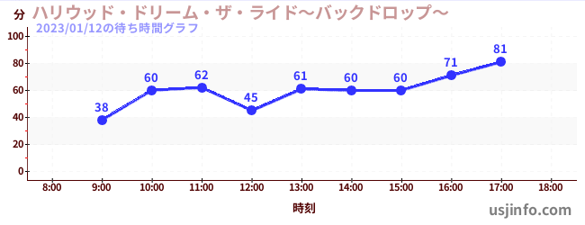 • ハリウッド・ドリーム・ザ・ライド〜バックドロップ〜$B$N(B2023年01月12日の待ち時間