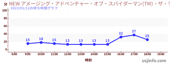 • NEW アメージング・アドベンチャー・オブ・スパイダーマン(TM)・ザ・ライド 4K3D$B$N(B2023年01月12日の待ち時間