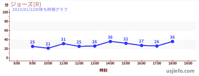 • ジョーズ(R)$B$N(B2023年01月12日の待ち時間