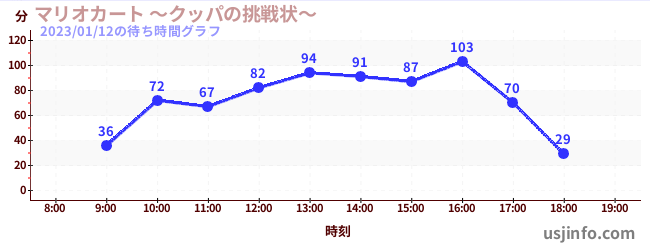 • マリオカート ~クッパの挑戦状~$B$N(B2023年01月12日の待ち時間