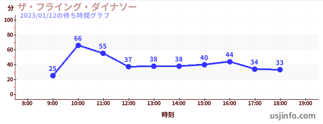 • ザ・フライング・ダイナソー$B$N(B2023年01月12日の待ち時間