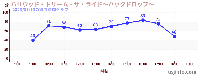 • ハリウッド・ドリーム・ザ・ライド〜バックドロップ〜$B$N(B2023年01月13日の待ち時間