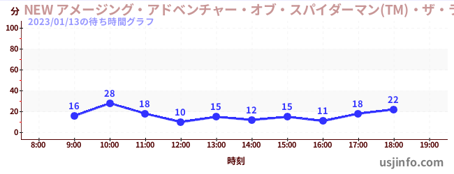 • NEW アメージング・アドベンチャー・オブ・スパイダーマン(TM)・ザ・ライド 4K3D$B$N(B2023年01月13日の待ち時間