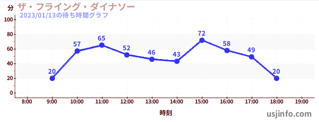 • ザ・フライング・ダイナソー$B$N(B2023年01月13日の待ち時間