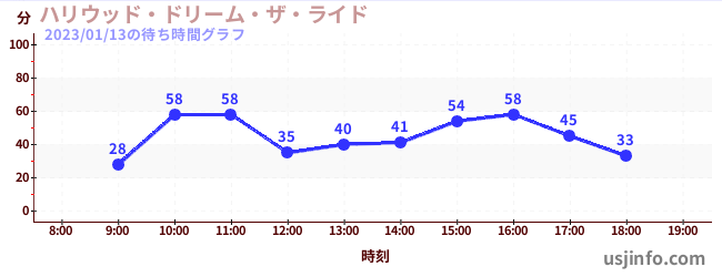 • ハリウッド・ドリーム・ザ・ライド$B$N(B2023年01月13日の待ち時間