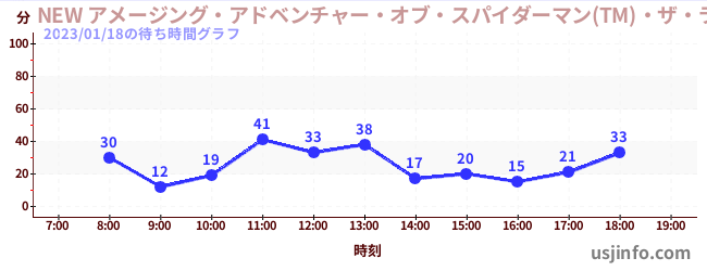 • NEW アメージング・アドベンチャー・オブ・スパイダーマン(TM)・ザ・ライド 4K3D$B$N(B2023年01月18日の待ち時間