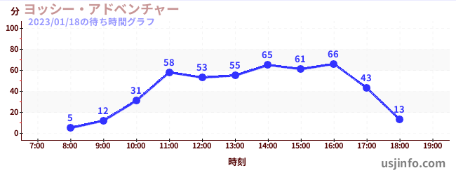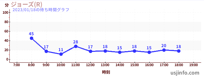 • ジョーズ(R)$B$N(B2023年01月18日の待ち時間