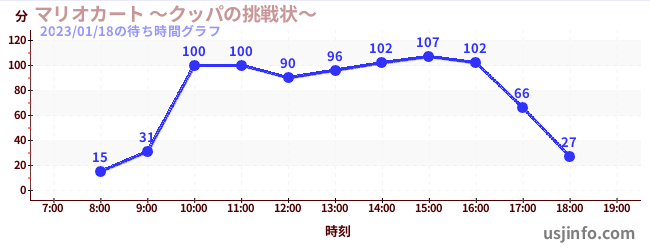 • マリオカート ~クッパの挑戦状~$B$N(B2023年01月18日の待ち時間