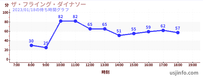 • ザ・フライング・ダイナソー$B$N(B2023年01月18日の待ち時間