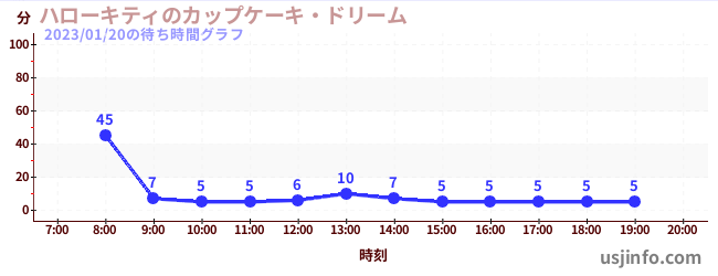 • ハローキティのカップケーキ・ドリーム$B$N(B2023年01月20日の待ち時間