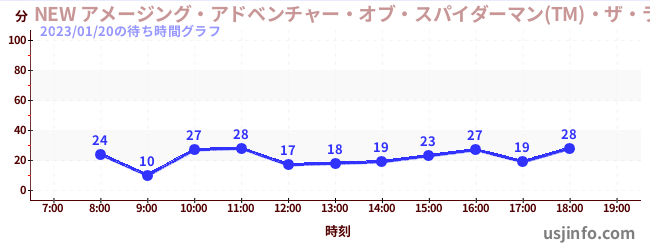 • NEW アメージング・アドベンチャー・オブ・スパイダーマン(TM)・ザ・ライド 4K3D$B$N(B2023年01月20日の待ち時間