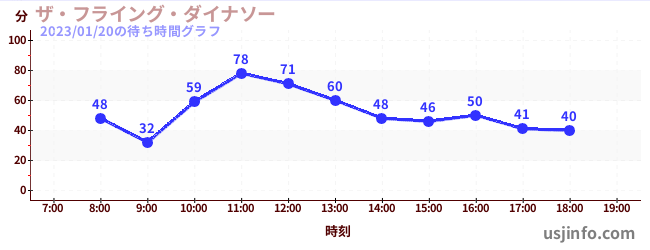 • ザ・フライング・ダイナソー$B$N(B2023年01月20日の待ち時間
