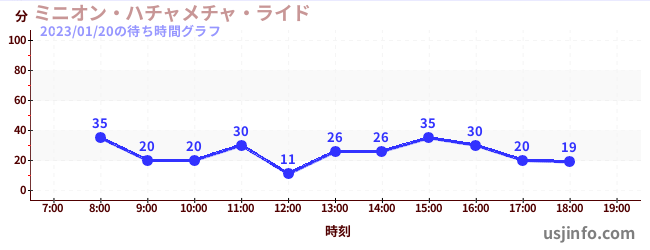 • ミニオン・ハチャメチャ・ライド$B$N(B2023年01月20日の待ち時間