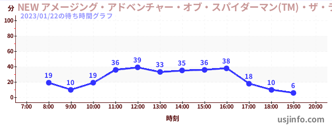 • NEW アメージング・アドベンチャー・オブ・スパイダーマン(TM)・ザ・ライド 4K3D$B$N(B2023年01月22日の待ち時間