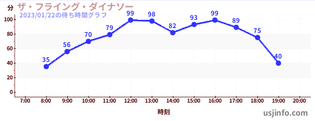 • ザ・フライング・ダイナソー$B$N(B2023年01月22日の待ち時間