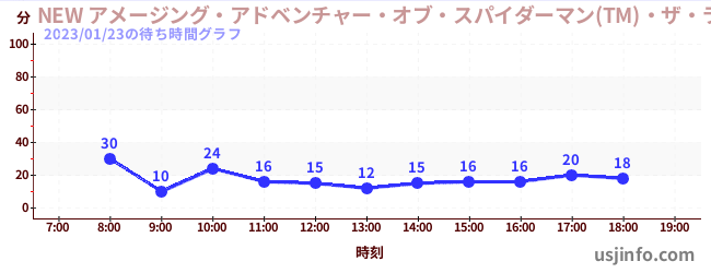 • NEW アメージング・アドベンチャー・オブ・スパイダーマン(TM)・ザ・ライド 4K3D$B$N(B2023年01月23日の待ち時間